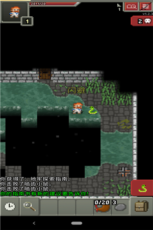 左上方框中为头像,头像框右下数字为等级,右方长条条是血条,头像黄色闪烁提示有未使用的天赋点。头像呈红色闪烁提示血量低该考虑回血了(露珠、回春草、治疗药剂、催眠卷轴)。点击头像可查看当前属性、状态,选择天赋。状态也会在血条下面显示图标,包括各种增益、负面状态及剩余回合数。