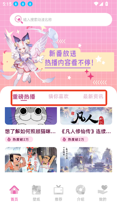 进入推荐板块,可以查看最新最热的漫画,动漫榜单,可以根据榜单筛选喜欢的内容