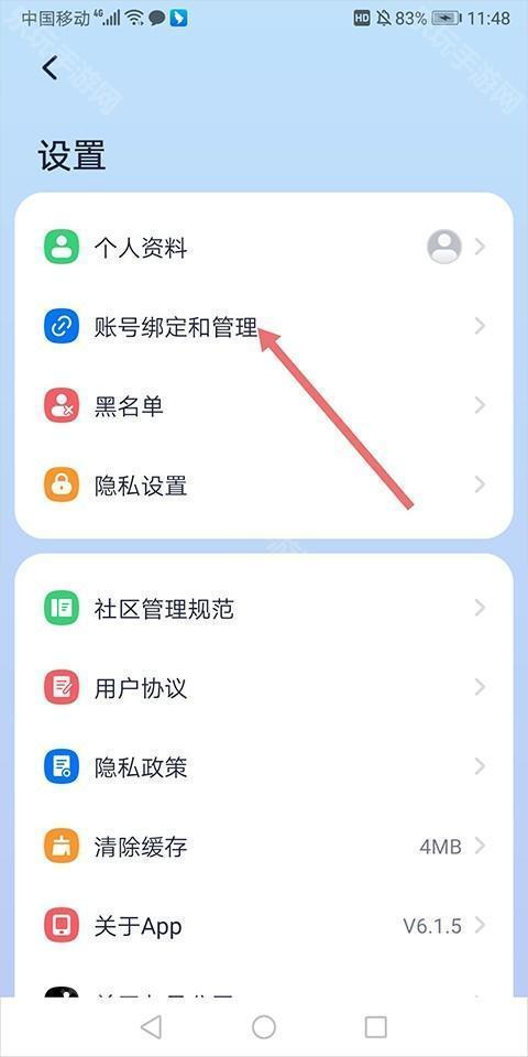3、在打开的设置页面中点击【账号绑定和管理】