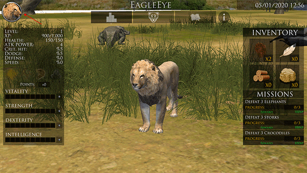 点击你的狮子图标来查看你的状态,自定义,和升级你的动物;