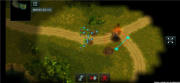 2、接着体验教学关卡,点击右侧按钮可以选择己方所有单位。