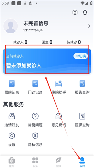 3、“个人中心管理”,支持管理家庭成员的健康档案、设置就医提醒、管理签约的家医团队及服务记录。