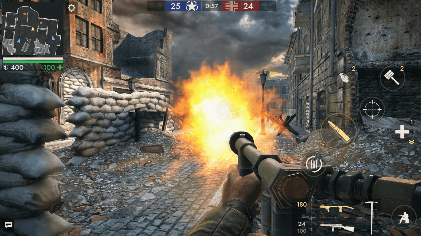 《世界战争英雄2025最新版》是一款以二战时期为背景的射击枪战类手机游戏!游戏中你们扮演的就是一个再普通不过的士兵,在和敌军对抗的时候,你们需要保护好自己,然后找到机会就击杀敌军!地图大部分是采用欧美二战时期的,地图环境变化多样,枪械种类繁多,可以给玩家带来最真实的枪战感受。游戏中,玩家可以亲身感受二战的刺激,超多兵种任你选择,多个战役你都可以参加,保卫家园!