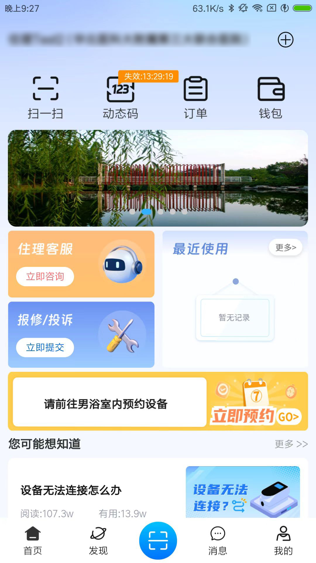 4、申请设备报修,在遇到设备故障的时候还能在客服中心选择设备报修服务并预约报修。