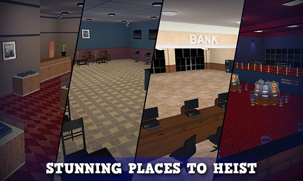 作为骗子,您需要成功抢劫各个地点,然后躲藏起来。确保带走所有追捕你并声称胜利的警察。