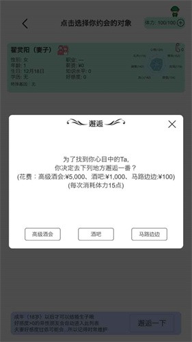 4、游戏中会有许多的随机事件发生,通过参与相应的随机事件并且给出相应的选择可以获得情商值加成。