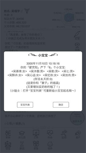 1、玩家将会经历从出生开始的一系列人生故事,书写一段自己的故事。