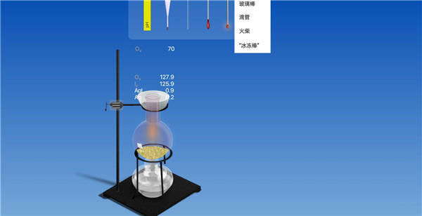 4、最右边的标识还提供了玻璃杯、滴管、火柴、冰冻棒等道具可以辅助大家实验