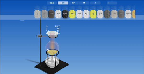 chemist虚拟化学实验室是一款真实模拟化学实验手游,该游戏真实模拟了在实验室操作过程,各种实验器具配备齐全,其中不但有烧杯、酒精灯、三脚架、试管等常用实验器材,还有令你眼花缭乱的各种有机物、固体、液体、气体等化学物质,可自由进行实验步骤,给你带来最直观的实验反应。