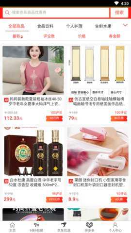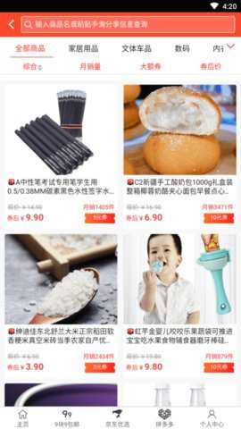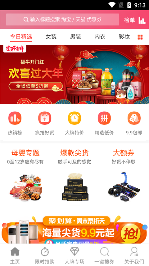 1、打开之后进入app主页面,然后选择“一键搜券”选项。