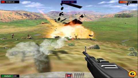 使用机枪射击士兵。 当自己没有干掉运兵战车或者是没有干掉运兵飞机的时候,就会出现大批量的士兵,会到达一定的射击范围内,向你攻击,尤其是扔手榴弹的,杀伤力很强,所以需要使用机枪射击,点击左键就会发射子弹,再点击不动,慢慢的向士兵身上移动,就可以运用机枪,杀死士兵了。