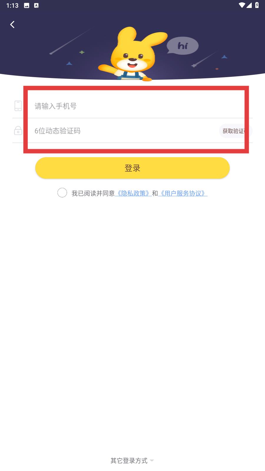 2、进入这个界面后,跟随方框的指引,将视线移到下方,点击手机登录,跳转到下一个界面。
