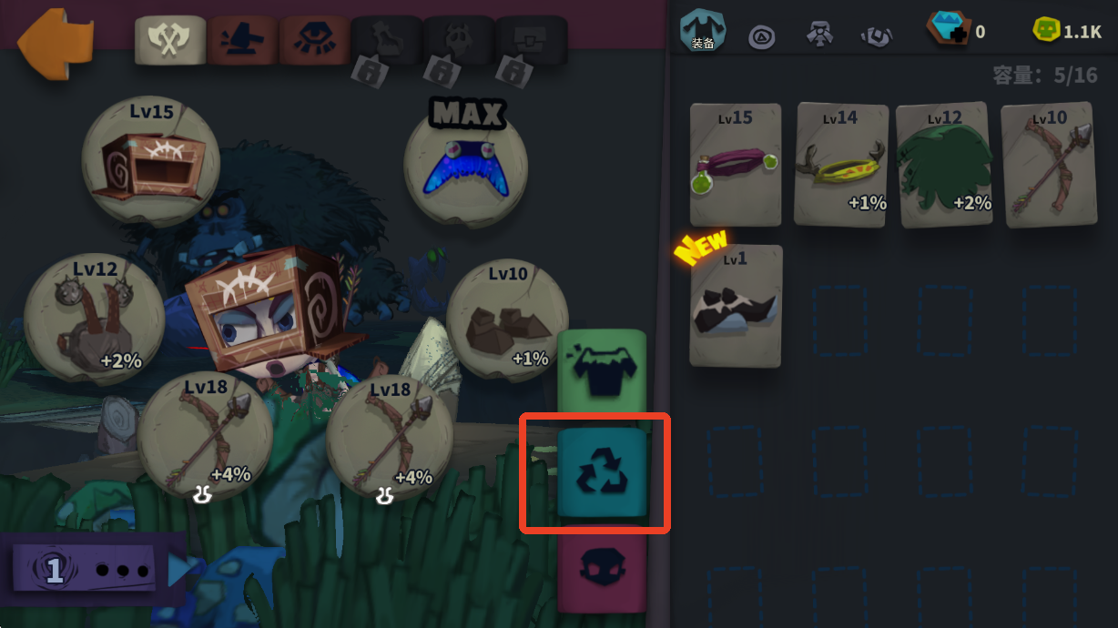 1、当我们打到21层时可以解锁分解功能,在背包界面的右下角。这是没解锁时的样子,是灰色的。