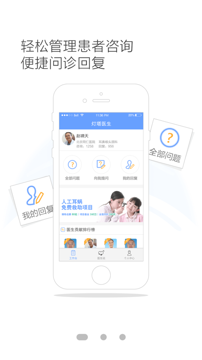 灯塔医生医生端是专为各科室医生打造的移动办公平台聚合千余位三甲医院各科室著名专家医生提供医生介绍、医疗服务诊疗效果评分、预约挂号加号、在线疾病咨询、预诊会诊、专家访谈、典型疾病案例解析、患者互助交流等服务让身处全国各地的患者都能便捷享受优质医疗资源