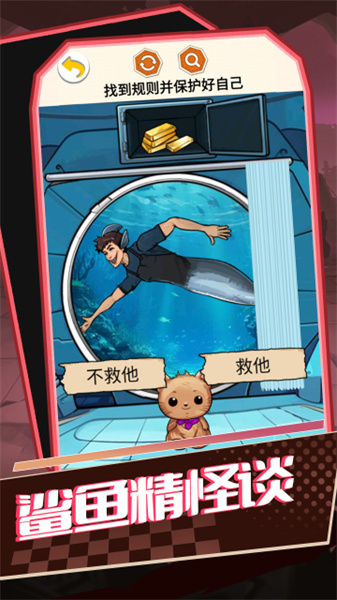 1、通过细致入微的观察和敏锐的直觉,玩家需要从精美的插画中找出隐藏的线索,逐步揭露围绕鲨鱼精的奇幻故事。
