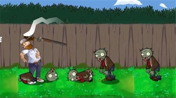 1、操控戴夫直接横扫前方的僵尸,疯狂射击或者直接用枪杆子暴击;