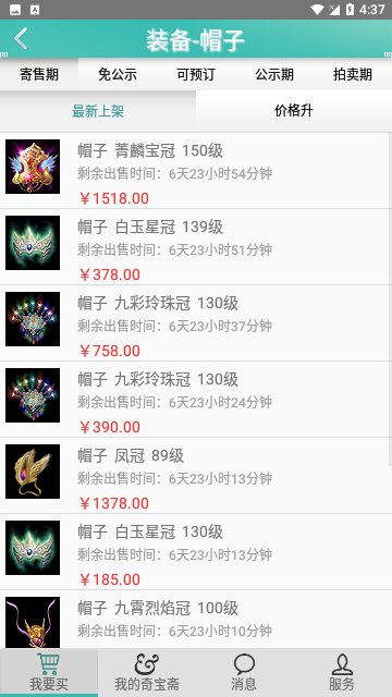 玩家可在游戏内或网页奇宝斋浏览公示期商品: