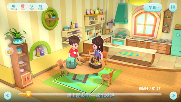 4、口语交流角,英语角实景口语训练,智能语音测评发音更准,让小朋友的发音更加的准确。