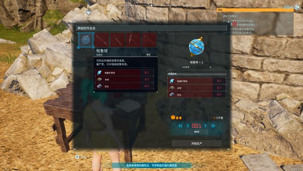8、然后收集材料进行制作,制作完成后寻找帕鲁抓捕就完成新手教程了,现在开始努力成为最强的帕鲁训练家吧!