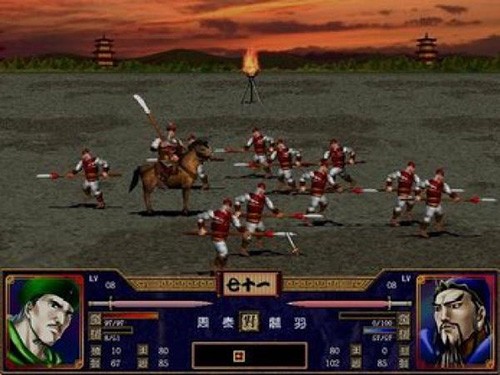 4、当你带飞刀兵,而敌方是链锤兵时,敌人不会全军突击,而是前军前进(电脑一般只有两个指令,一是全军突击,二是前军前进)。所以你可以选武将位置前列,开战时全军前进,等敌方链锤兵进入飞刀兵射程后选全军后退,不一会儿电脑的前军就被杀光,此时再全军前进,等敌方武将进入飞刀兵射程后全军待击,你就会发现敌方武将傻傻的站在那儿等你飞刀兵射他,一直到他的血剩10几滴时他才想起来该逃跑了。