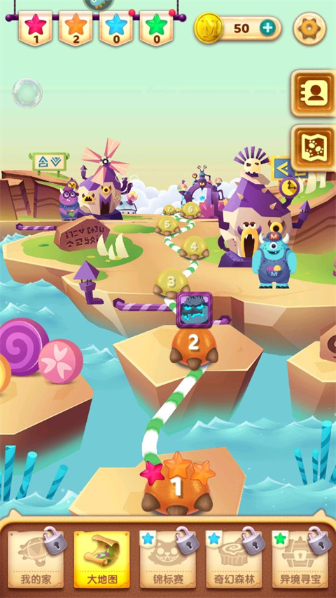 游戏地图采用3D技术进行设计与实现,呈现给你最奇妙的魔法世界!手指轻轻一滑,整个星球便随之转动哟!