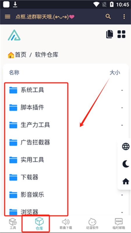 4、点击仓库,这里为大家提供了影音娱乐、实用工具等超多资源