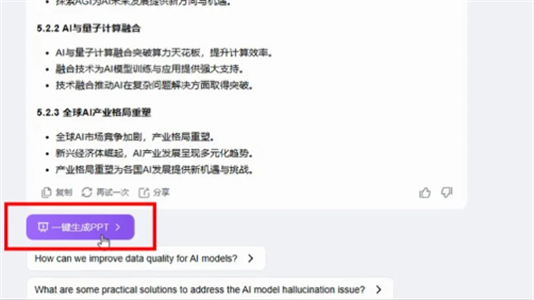 4、粘贴到PPT制作工具中,选择“一键生成PPT”功能,快速生成PPT文件。