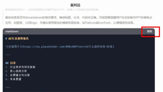 3、将DeepSeek生成的Markdown格式提纲复制。