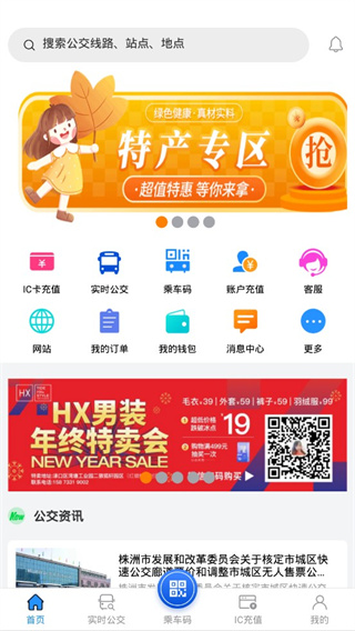 3、在首页我们可以看到有IC卡充值、实时公交、账户充值等服务。