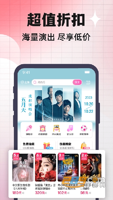 演唱会、音乐节、话剧、脱口秀...你想看的演出全都有,超值折扣尽享低价。