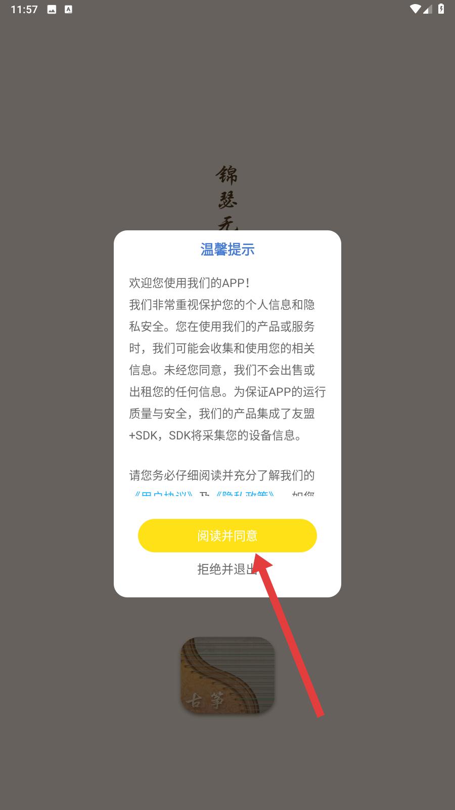 1、弹出温馨提示窗口,仔细阅读关于个人信息保护等内容,点击阅读并同意按钮,接受相关条款。