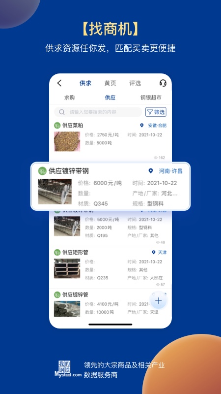 5、供求:供应和求购信息发布,废钢、铁合金等资源交易信息平台。