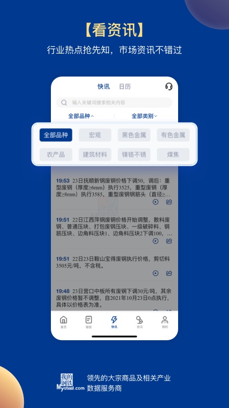 宏观,市场,库存和钢铁厂这四个新闻专栏,关注行业趋势,掌握发展方向