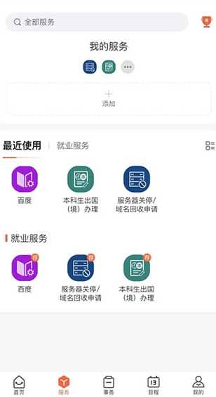 百度、本科生出国(境)办理、服务器关停/域名回收申请、通知公告、校内新闻、校务公开、历史文件查询;