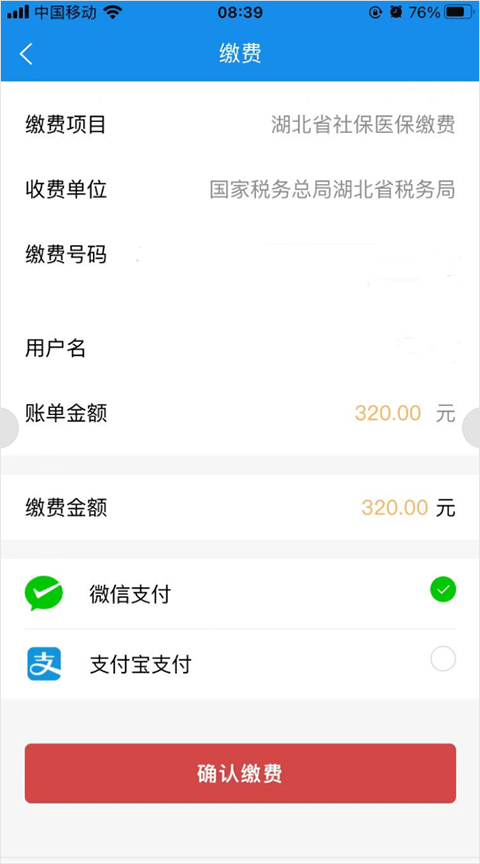 5、生成缴款信息,再次确认无误后,选择相应的付款方式,点击确认缴费。