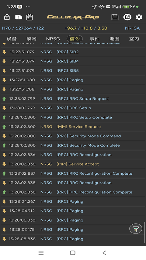 2、提供5G /LTE/GSM/WCDMA的无线测量参数显示;