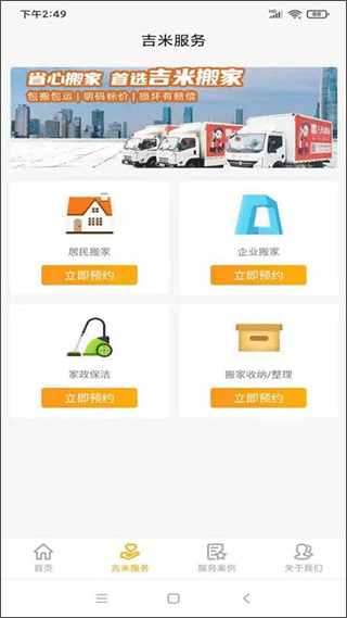 1、打开并登入吉米搬家app,选择底部 立即预约 点击