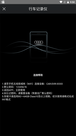 4、WiFi连接成功后就可以按照下方文字的引导来连接行车记录仪了,连接成功后就可以开始操作了。