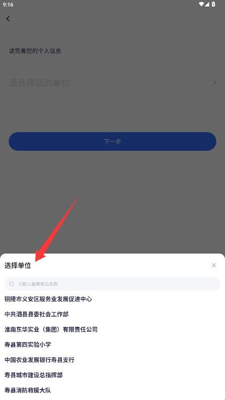 3、浏览单位列表,选中需要加入的单位名称,确认后点击下一步继续进行操作。