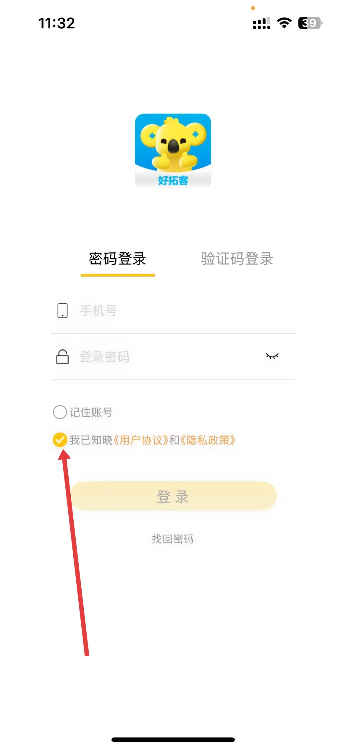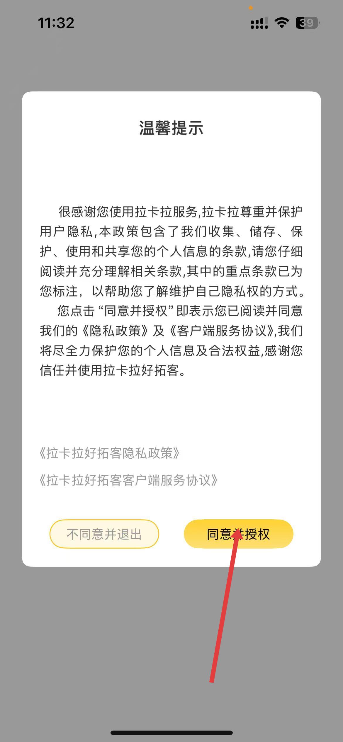 3、认真阅读软件使用的协议,确认自己能够接受后,勾选圆圈,进行下一步操作完成登录。