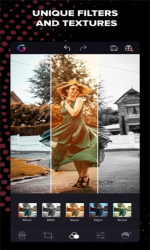 3、手工过滤器和纹理:与我们彻底创建的过滤器包和高质量的纹理,创建最美丽的照片在仅仅两次点击。