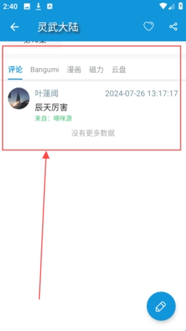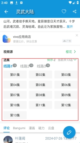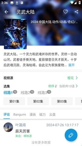 3、任意选择一个你感兴趣的动漫打开,这里以“灵武大陆”为例。