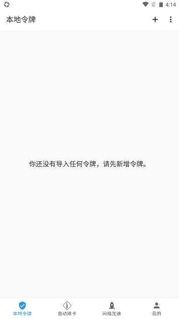 1、刚打开应用会进入令牌页面,用户在该页面中可以通过点击右上角的添加按钮