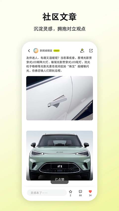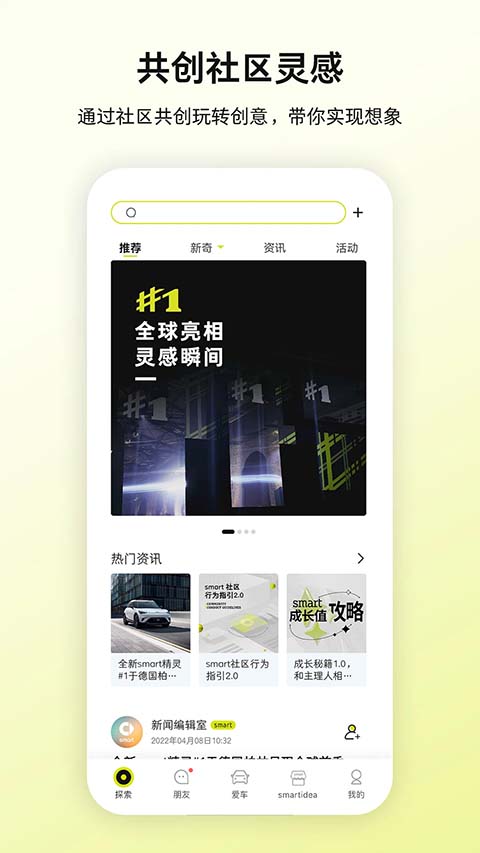用户可以在这里看到其他的的smart用户发表的动态和品牌大使最新来带的消息