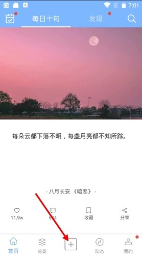 用户在使用软件的时候除了可以去看别人发的句子以外,还能自己发布句子分享