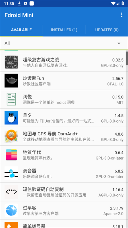Fdroid Mini软件商店下载最新版本2025是一款非常好用的开源应用商店软件,可以根据需求选择不同的软件源下载应用,无广告无会员可以直接免费使用,相比原版更加精简,还可以一键查询到已安装的资源软件,非常方便,感兴趣的朋友们快来下载吧!