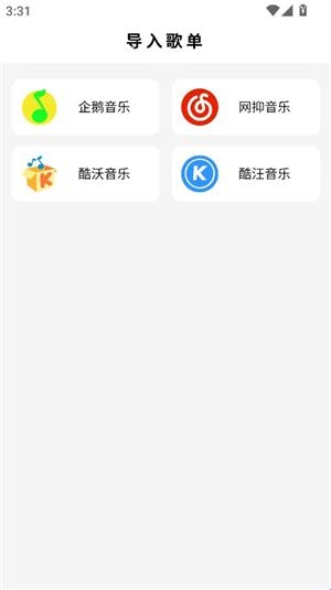 4、在这里你可以导入企鹅音乐、酷我音乐、网易云音乐等多种音乐歌单。