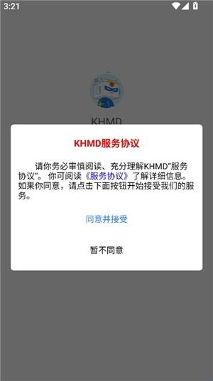1、在本页面下载khmd音乐软件,然后打开并同意服务协议。