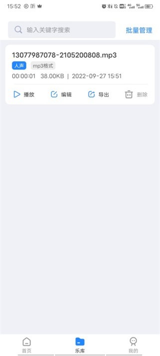 1、进入音频大师app后,进入乐库,或是选择其他你想要转换的音频。