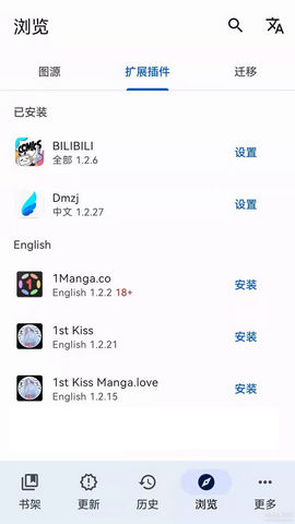 4、然后你就可以点击“图源”,找到刚刚安装好的哔哩哔哩漫画,点击进去。